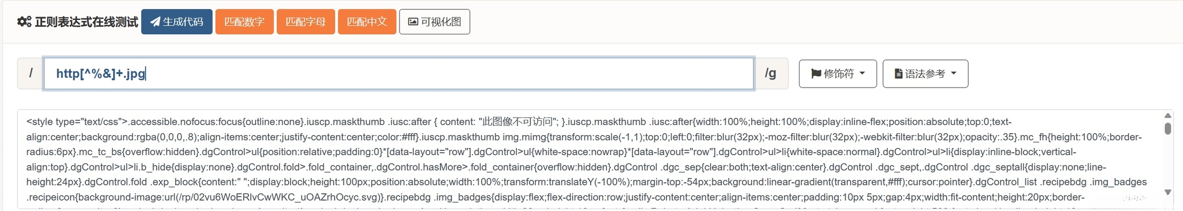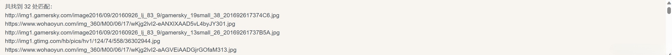 可以看到,通过这个正则表达式,所有图片的URL都被提取出来