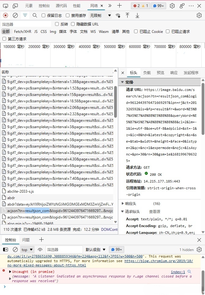 事实上,百度图片的URL信息都储存在这类请求中。这类请求的完整URL如下: