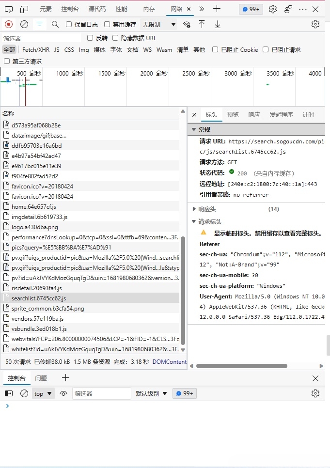 搜狗与百度存储图片URL的请求头名字不同,如下: