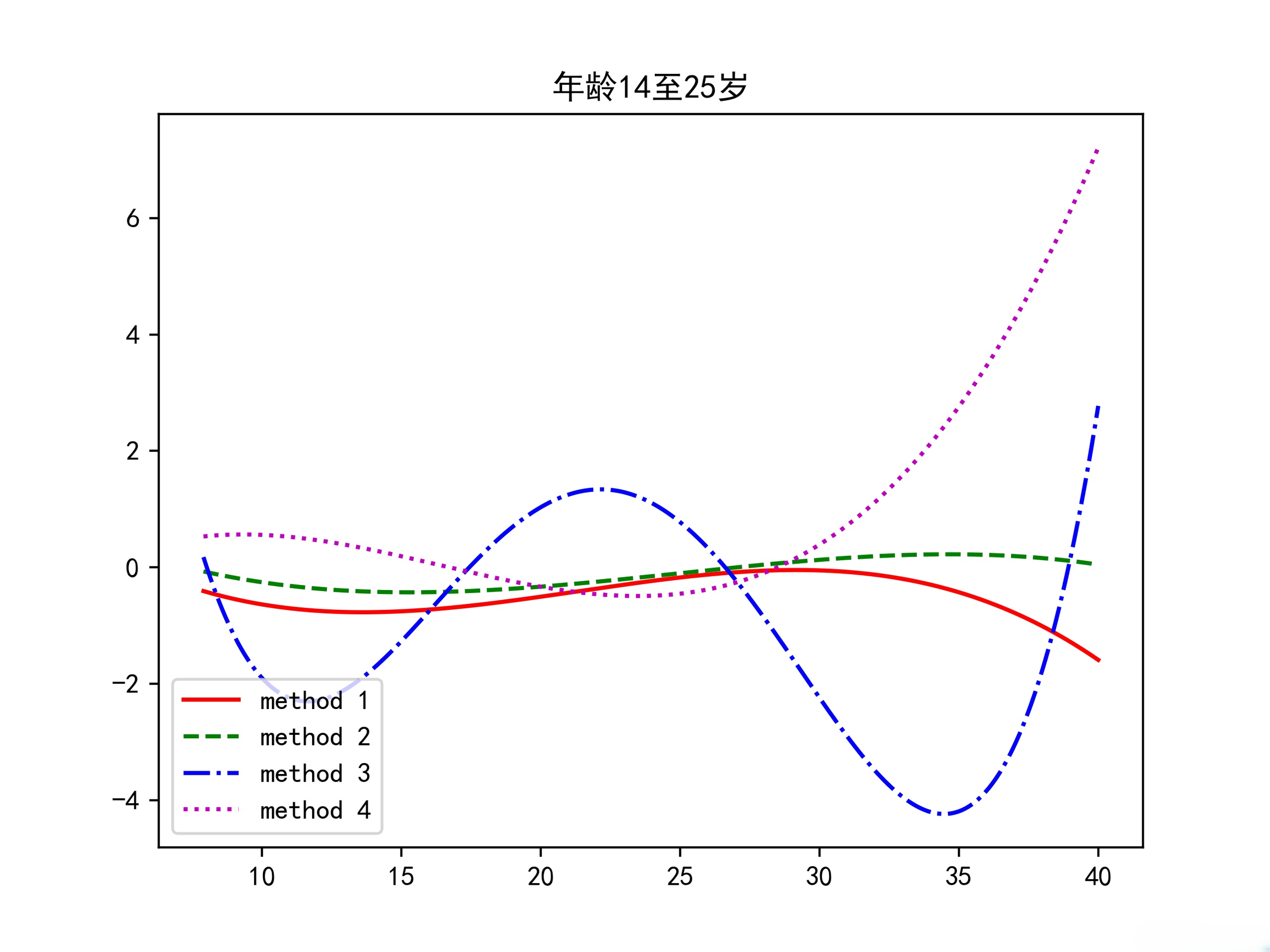 接下来,为了描绘CD4浓度的变化,对这六个点,相邻的两点y值做减法,最终得到5个点,然后用这5个点进行拟合。下面展示一个年龄组的拟合结果: