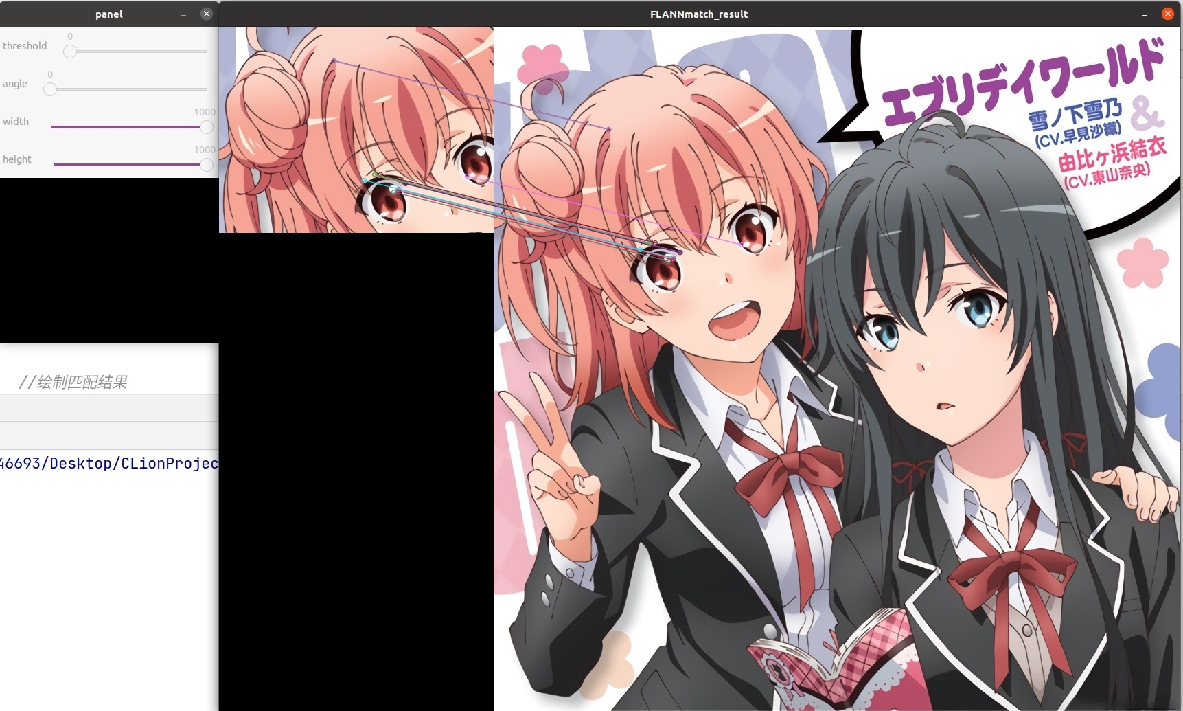 vector<Point2f>进行变换,就得到了我们想要查找的图片在训练图中的四角对应坐标点集vector<Point2f>用polylines函数在训练图中画出结果